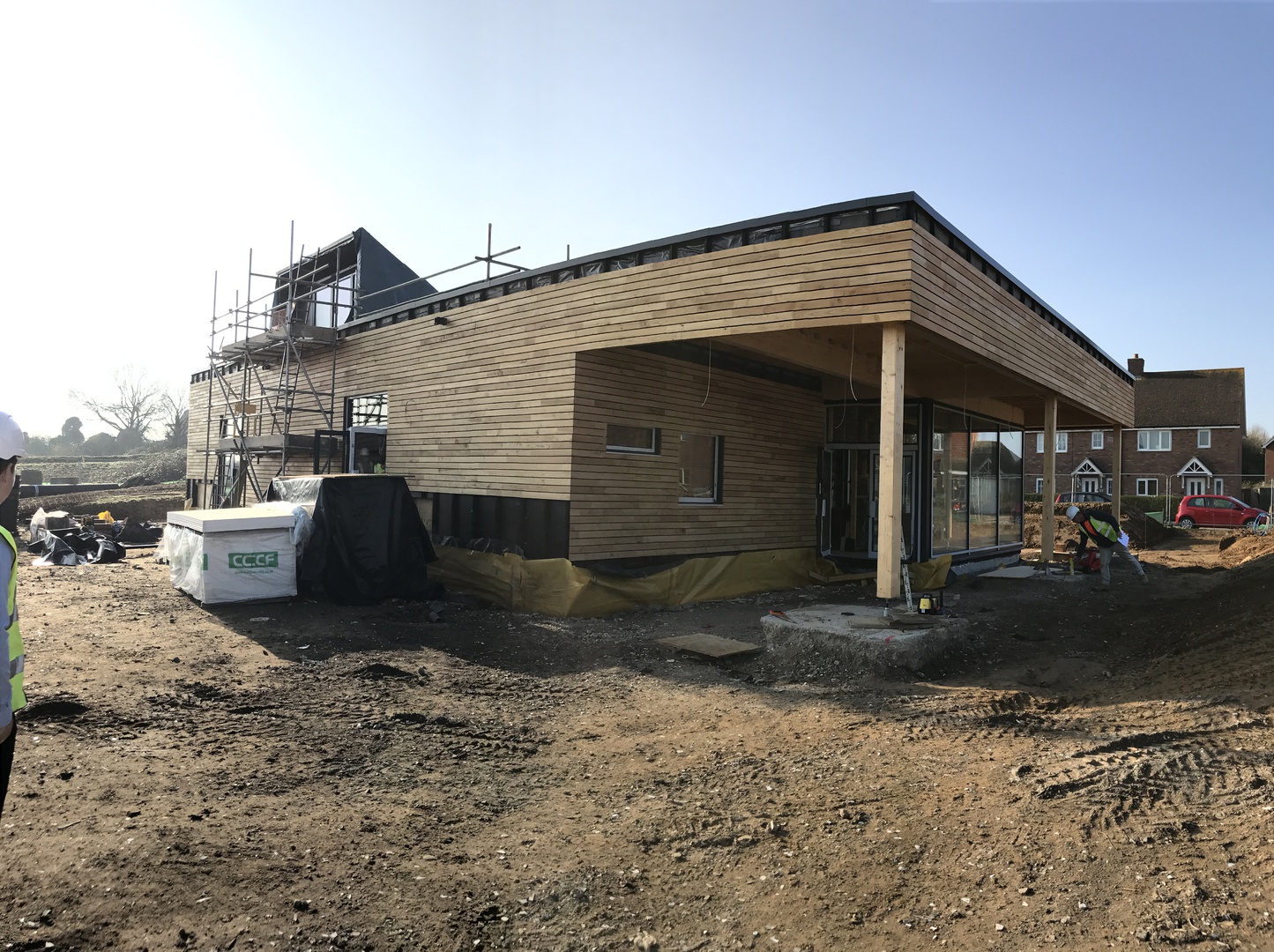 The construction of the village hall began on Monday 12th September, The early contruction has gone well and the lost time with the delay to the start of construction has been caught up. The slab was laid and the Modular build started on the 20th October 2016. The scedule of works has been ongoing through the winter of 2016 with an expected completion date of Late May 2017.